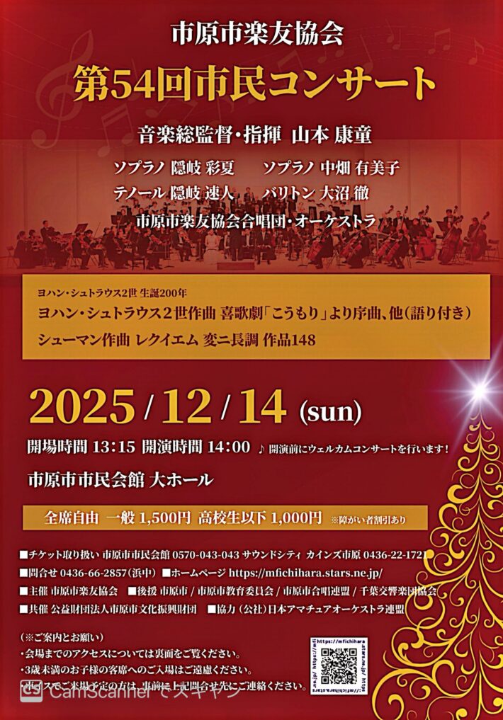 J.シュトラウス2世/喜歌劇「こうもり」より序曲と抜粋(語り付き) シューマン/レクイエム 指揮:山本 康童 ソプラノ 隠岐彩夏 ソプラノ 中畑有美子 テノール 隠岐速人 バリトン 大沼徹 入場料:一般1,500円 高校生以下1,000円(全席自由)![]()